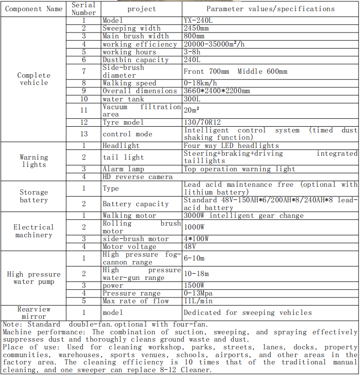 பயன்பாட்டு இடம்: பட்டறை, பூங்காக்கள், வீதிகள், பாதைகள், கப்பல்துறைகள், சொத்து காமனிட்டுகள், கிடங்குகள், விளையாட்டு இடங்கள், பள்ளிகள், விமான நிலையங்கள் மற்றும் பல பகுதிகளில் உள்ள பிற பகுதிகளுக்கு சுத்தம் செய்யப் பயன்படுகிறது. துப்புரவு திறன் பாரம்பரிய கையேடு கிளீனிங் செய்வதை விட 10 மடங்கு ஆகும், மேலும் ஒரு துப்புரவாளர் 8-12 கிளீனரை மாற்ற முடியும்.